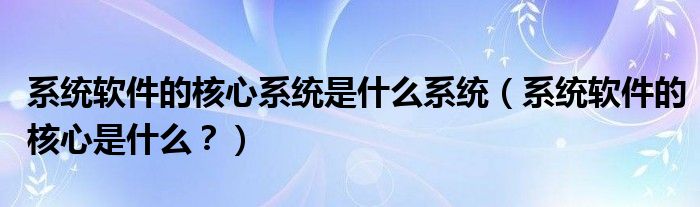 大家好,小安來為大家解答以上問題。系統軟件的核心系統是什么系統,系統軟件的核心是什么?很多人還不知道,現在讓我們一起來看看吧!