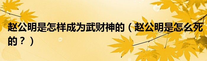 大家好,小安來為大家解答以上問題。趙公明是怎樣成為武財神的,趙公明是怎么死的?很多人還不知道,現在讓我們一起來看看吧!