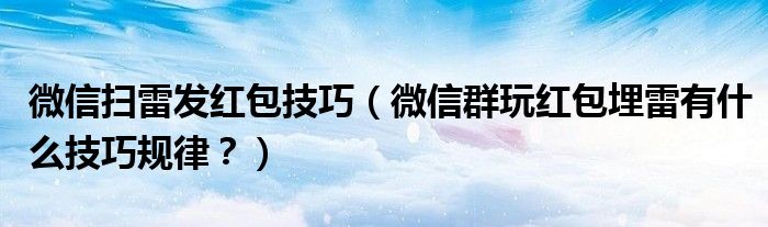 大家好,小安來為大家解答以上問題。微信掃雷發(fā)紅包技巧,微信群玩紅包埋雷有什么技巧規(guī)律?很多人還不知道,現(xiàn)在讓我們一起來看看吧!