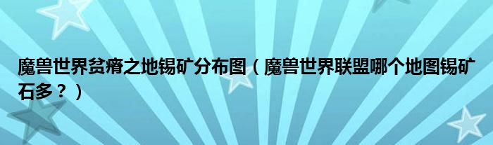大家好,小安來為大家解答以上問題。魔獸世界貧瘠之地錫礦分布圖,魔獸世界聯盟哪個地圖錫礦石多?很多人還不知道,現在讓我們一起來看看吧!