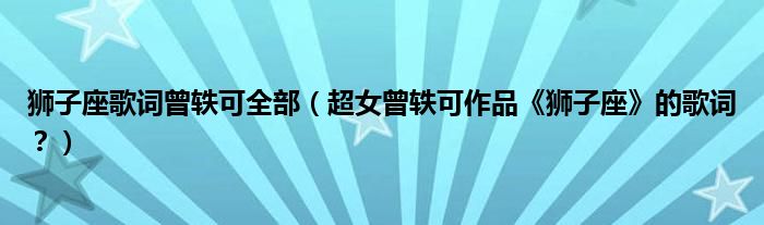 大家好,小安來為大家解答以上問題。獅子座歌詞曾軼可全部,超女曾軼可作品《獅子座》的歌詞?很多人還不知道,現在讓我們一起來看看吧!
