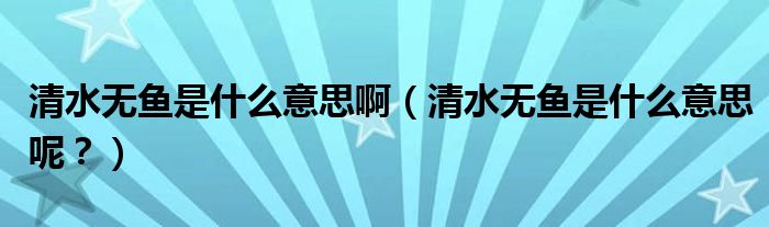 大家好,小安來(lái)為大家解答以上問(wèn)題。清水無(wú)魚(yú)是什么意思啊,清水無(wú)魚(yú)是什么意思呢?很多人還不知道,現(xiàn)在讓我們一起來(lái)看看吧!