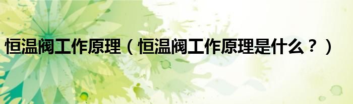 大家好,小安來為大家解答以上問題。恒溫閥工作原理,恒溫閥工作原理是什么?很多人還不知道,現在讓我們一起來看看吧!
