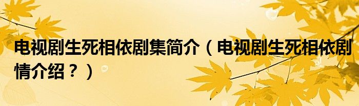大家好,小安來為大家解答以上問題。電視劇生死相依劇集簡介,電視劇生死相依劇情介紹?很多人還不知道,現在讓我們一起來看看吧!
