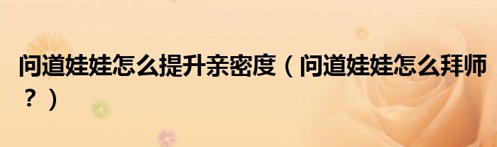 大家好,小安來為大家解答以上問題。問道娃娃怎么提升親密度,問道娃娃怎么拜師?很多人還不知道,現(xiàn)在讓我們一起來看看吧!