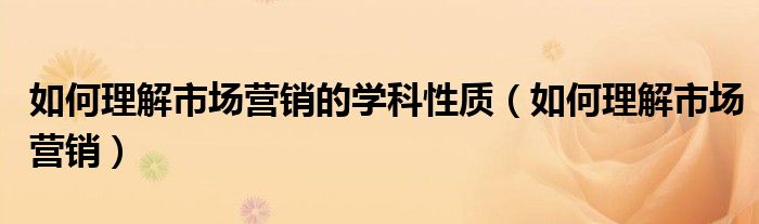 大家好,小安來為大家解答以上問題。如何理解市場(chǎng)營(yíng)銷的學(xué)科性質(zhì),如何理解市場(chǎng)營(yíng)銷很多人還不知道,現(xiàn)在讓我們一起來看看吧!