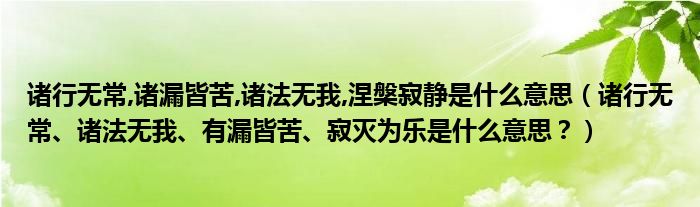 大家好,小安來為大家解答以上問題。諸行無常,諸漏皆苦,諸法無我,涅槃寂靜是什么意思,諸行無常、諸法無我、有漏皆苦、寂滅為樂是什么意思?很多人還不知道,現在讓我們一起來看看吧!