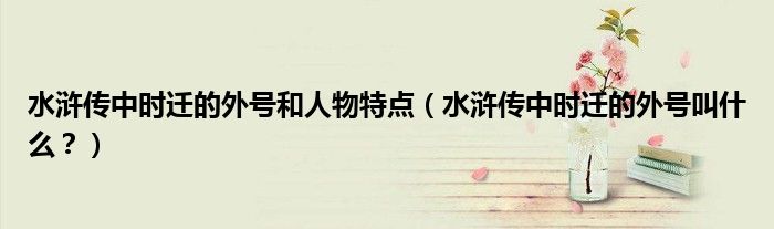 大家好,小安來為大家解答以上問題。水滸傳中時(shí)遷的外號(hào)和人物特點(diǎn),水滸傳中時(shí)遷的外號(hào)叫什么?很多人還不知道,現(xiàn)在讓我們一起來看看吧!