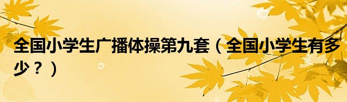 大家好,小安來為大家解答以上問題。全國小學生廣播體操第九套,全國小學生有多少?很多人還不知道,現在讓我們一起來看看吧!