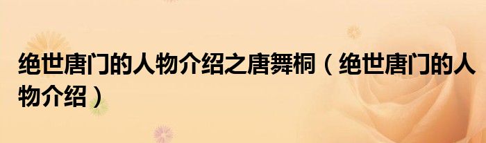 大家好,小安來為大家解答以上問題。絕世唐門的人物介紹之唐舞桐,絕世唐門的人物介紹很多人還不知道,現在讓我們一起來看看吧!