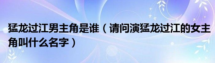 大家好,小安來為大家解答以上問題。猛龍過江男主角是誰(shuí),請(qǐng)問演猛龍過江的女主角叫什么名字很多人還不知道,現(xiàn)在讓我們一起來看看吧!