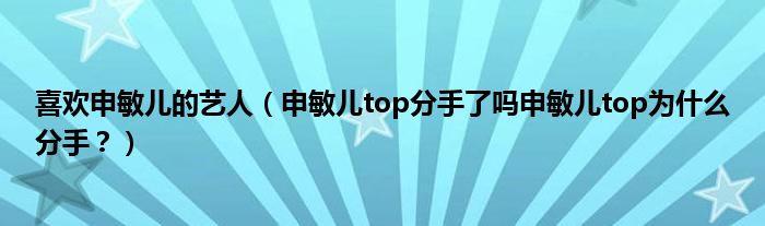 大家好,小安來為大家解答以上問題。喜歡申敏兒的藝人,申敏兒top分手了嗎申敏兒top為什么分手?很多人還不知道,現在讓我們一起來看看吧!
