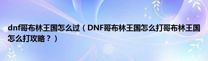 大家好,小安來為大家解答以上問題。dnf哥布林王國怎么過,DNF哥布林王國怎么打哥布林王國怎么打攻略?很多人還不知道,現在讓我們一起來看看吧!