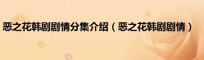 大家好,小安來為大家解答以上問題。惡之花韓劇劇情分集介紹,惡之花韓劇劇情很多人還不知道,現在讓我們一起來看看吧!
