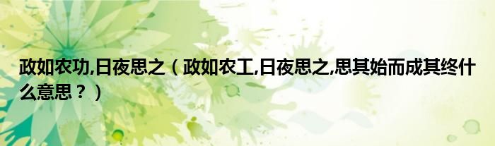 大家好,小安來為大家解答以上問題。政如農功,日夜思之,政如農工,日夜思之,思其始而成其終什么意思?很多人還不知道,現在讓我們一起來看看吧!
