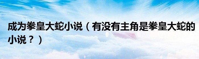 大家好,小安來為大家解答以上問題。成為拳皇大蛇小說,有沒有主角是拳皇大蛇的小說?很多人還不知道,現在讓我們一起來看看吧!