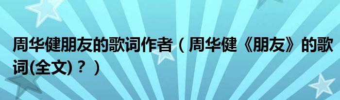 大家好,小安來為大家解答以上問題。周華健朋友的歌詞作者,周華健《朋友》的歌詞(全文)?很多人還不知道,現在讓我們一起來看看吧!