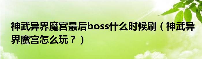 大家好,小安來為大家解答以上問題。神武異界魔宮最后boss什么時候刷,神武異界魔宮怎么玩?很多人還不知道,現(xiàn)在讓我們一起來看看吧!
