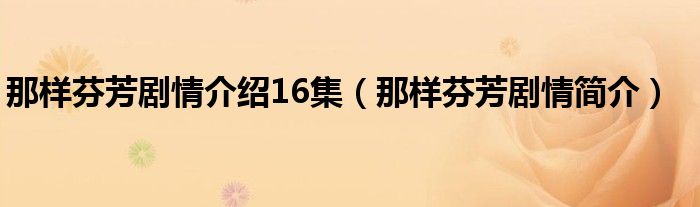 大家好,小安來為大家解答以上問題。那樣芬芳劇情介紹16集,那樣芬芳劇情簡介很多人還不知道,現在讓我們一起來看看吧!