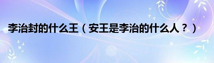 大家好,小安來為大家解答以上問題。李治封的什么王,安王是李治的什么人?很多人還不知道,現在讓我們一起來看看吧!