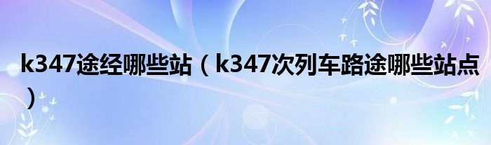大家好,小安來為大家解答以上問題。k347途經哪些站,k347次列車路途哪些站點很多人還不知道,現在讓我們一起來看看吧!