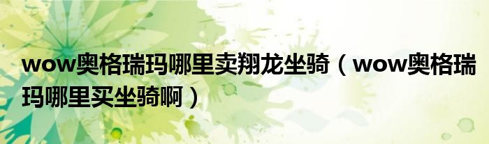 大家好,小安來(lái)為大家解答以上問(wèn)題。wow奧格瑞瑪哪里賣翔龍坐騎,wow奧格瑞瑪哪里買坐騎啊很多人還不知道,現(xiàn)在讓我們一起來(lái)看看吧!