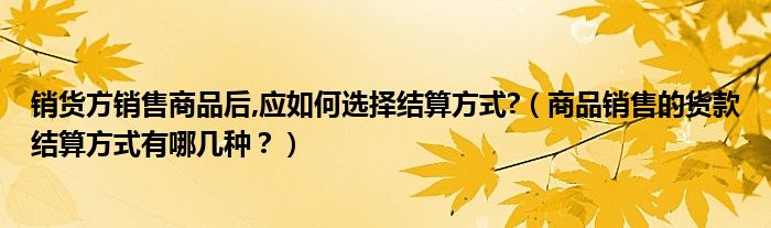 大家好,小安來為大家解答以上問題。銷貨方銷售商品后,應如何選擇結算方式?,商品銷售的貨款結算方式有哪幾種?很多人還不知道,現在讓我們一起來看看吧!