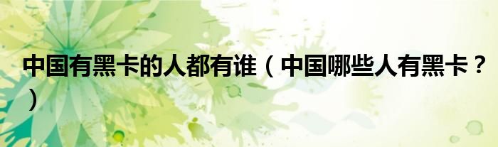 大家好,小安來為大家解答以上問題。中國有黑卡的人都有誰,中國哪些人有黑卡?很多人還不知道,現在讓我們一起來看看吧!