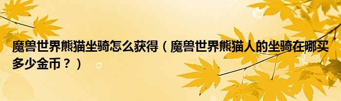 大家好,小安來為大家解答以上問題。魔獸世界熊貓坐騎怎么獲得,魔獸世界熊貓人的坐騎在哪買多少金幣?很多人還不知道,現(xiàn)在讓我們一起來看看吧!
