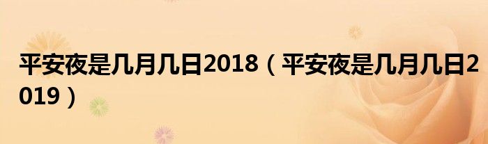 大家好,小安來為大家解答以上問題。平安夜是幾月幾日2018,平安夜是幾月幾日2019很多人還不知道,現在讓我們一起來看看吧!