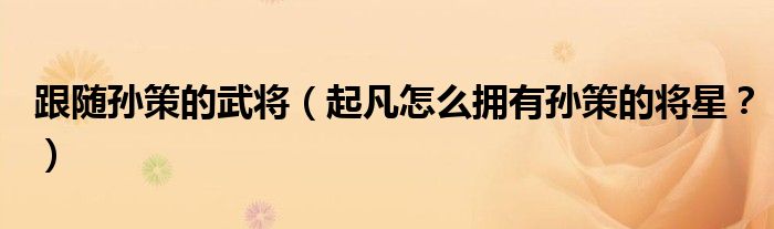 大家好,小安來為大家解答以上問題。跟隨孫策的武將,起凡怎么擁有孫策的將星?很多人還不知道,現在讓我們一起來看看吧!