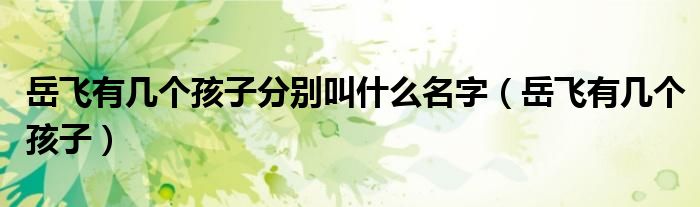 大家好,小安來為大家解答以上問題。岳飛有幾個孩子分別叫什么名字,岳飛有幾個孩子很多人還不知道,現在讓我們一起來看看吧!