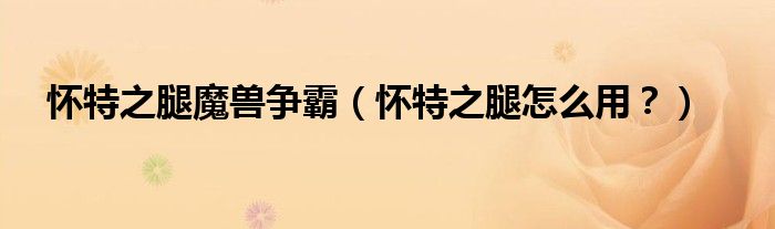 大家好,小安來為大家解答以上問題。懷特之腿魔獸爭霸,懷特之腿怎么用?很多人還不知道,現在讓我們一起來看看吧!