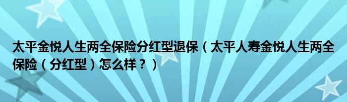 大家好,小安來(lái)為大家解答以上問(wèn)題。太平金悅?cè)松鷥扇kU(xiǎn)分紅型退保,太平人壽金悅?cè)松鷥扇kU(xiǎn),分紅型怎么樣?很多人還不知道,現(xiàn)在讓我們一起來(lái)看看吧!