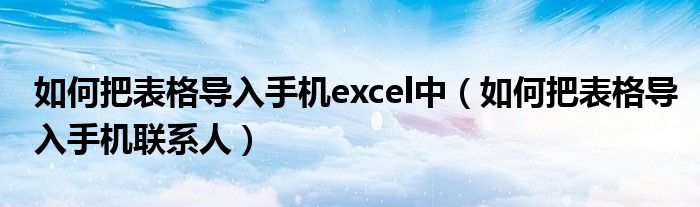 大家好,小安來為大家解答以上問題。如何把表格導入手機excel中,如何把表格導入手機聯系人很多人還不知道,現在讓我們一起來看看吧!