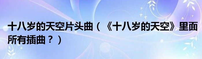 大家好,小安來為大家解答以上問題。十八歲的天空片頭曲,《十八歲的天空》里面所有插曲?很多人還不知道,現(xiàn)在讓我們一起來看看吧!