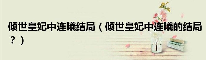 大家好,小安來(lái)為大家解答以上問題。傾世皇妃中連曦結(jié)局,傾世皇妃中連曦的結(jié)局?很多人還不知道,現(xiàn)在讓我們一起來(lái)看看吧!