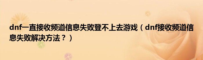 大家好,小安來為大家解答以上問題。dnf一直接收頻道信息失敗登不上去游戲,dnf接收頻道信息失敗解決方法?很多人還不知道,現在讓我們一起來看看吧!