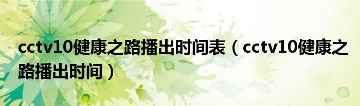 大家好,小安來為大家解答以上問題。cctv10健康之路播出時間表,cctv10健康之路播出時間很多人還不知道,現在讓我們一起來看看吧!