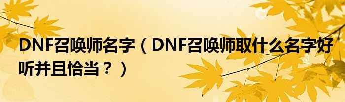 大家好,小安來為大家解答以上問題。DNF召喚師名字,DNF召喚師取什么名字好聽并且恰當?很多人還不知道,現在讓我們一起來看看吧!