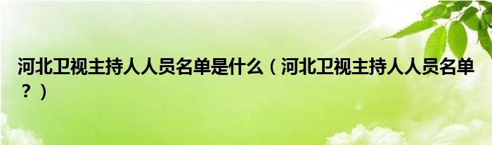 大家好,小安來為大家解答以上問題。河北衛(wèi)視主持人人員名單是什么,河北衛(wèi)視主持人人員名單?很多人還不知道,現(xiàn)在讓我們一起來看看吧!