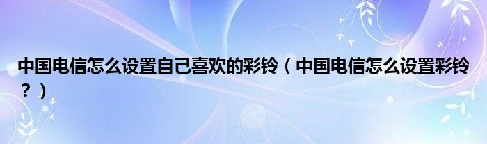 大家好,小安來為大家解答以上問題。中國電信怎么設置自己喜歡的彩鈴,中國電信怎么設置彩鈴?很多人還不知道,現在讓我們一起來看看吧!