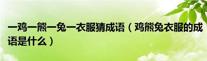 大家好,小安來為大家解答以上問題。一雞一熊一兔一衣服猜成語,雞熊兔衣服的成語是什么很多人還不知道,現在讓我們一起來看看吧!