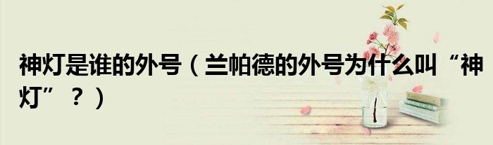 大家好,小安來為大家解答以上問題。神燈是誰的外號,蘭帕德的外號為什么叫“神燈”?很多人還不知道,現在讓我們一起來看看吧!