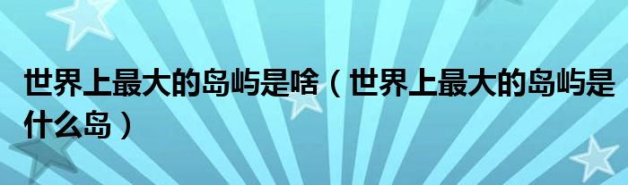 大家好,小安來為大家解答以上問題。世界上最大的島嶼是啥,世界上最大的島嶼是什么島很多人還不知道,現在讓我們一起來看看吧!