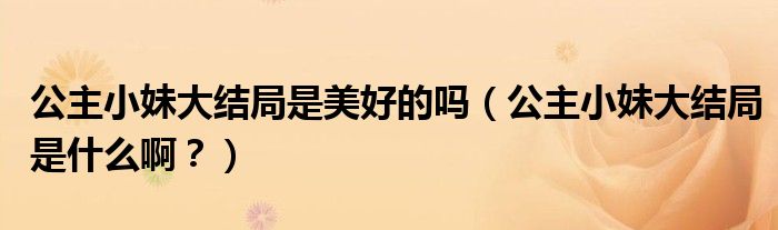 大家好,小安來(lái)為大家解答以上問(wèn)題。公主小妹大結(jié)局是美好的嗎,公主小妹大結(jié)局是什么?。亢芏嗳诉€不知道,現(xiàn)在讓我們一起來(lái)看看吧!