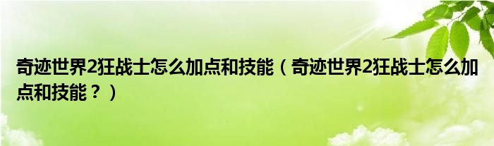 大家好,小安來為大家解答以上問題。奇跡世界2狂戰士怎么加點和技能,奇跡世界2狂戰士怎么加點和技能?很多人還不知道,現在讓我們一起來看看吧!