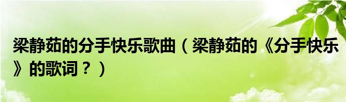 大家好,小安來為大家解答以上問題。梁靜茹的分手快樂歌曲,梁靜茹的《分手快樂》的歌詞?很多人還不知道,現在讓我們一起來看看吧!