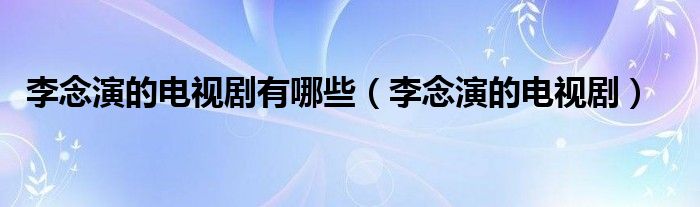 大家好,小安來為大家解答以上問題。李念演的電視劇有哪些,李念演的電視劇很多人還不知道,現在讓我們一起來看看吧!