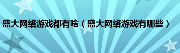 大家好,小安來為大家解答以上問題。盛大網絡游戲都有啥,盛大網絡游戲有哪些很多人還不知道,現在讓我們一起來看看吧!